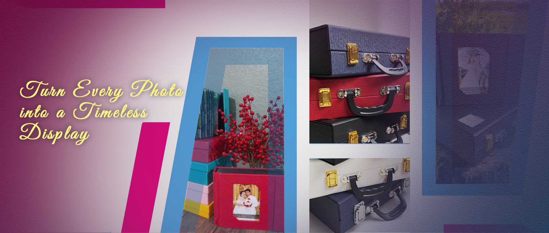Handcrafted photobooks, wall frames, and premium prints, each piece made to showcase your memories in elegant, lasting style that fits your home or office.